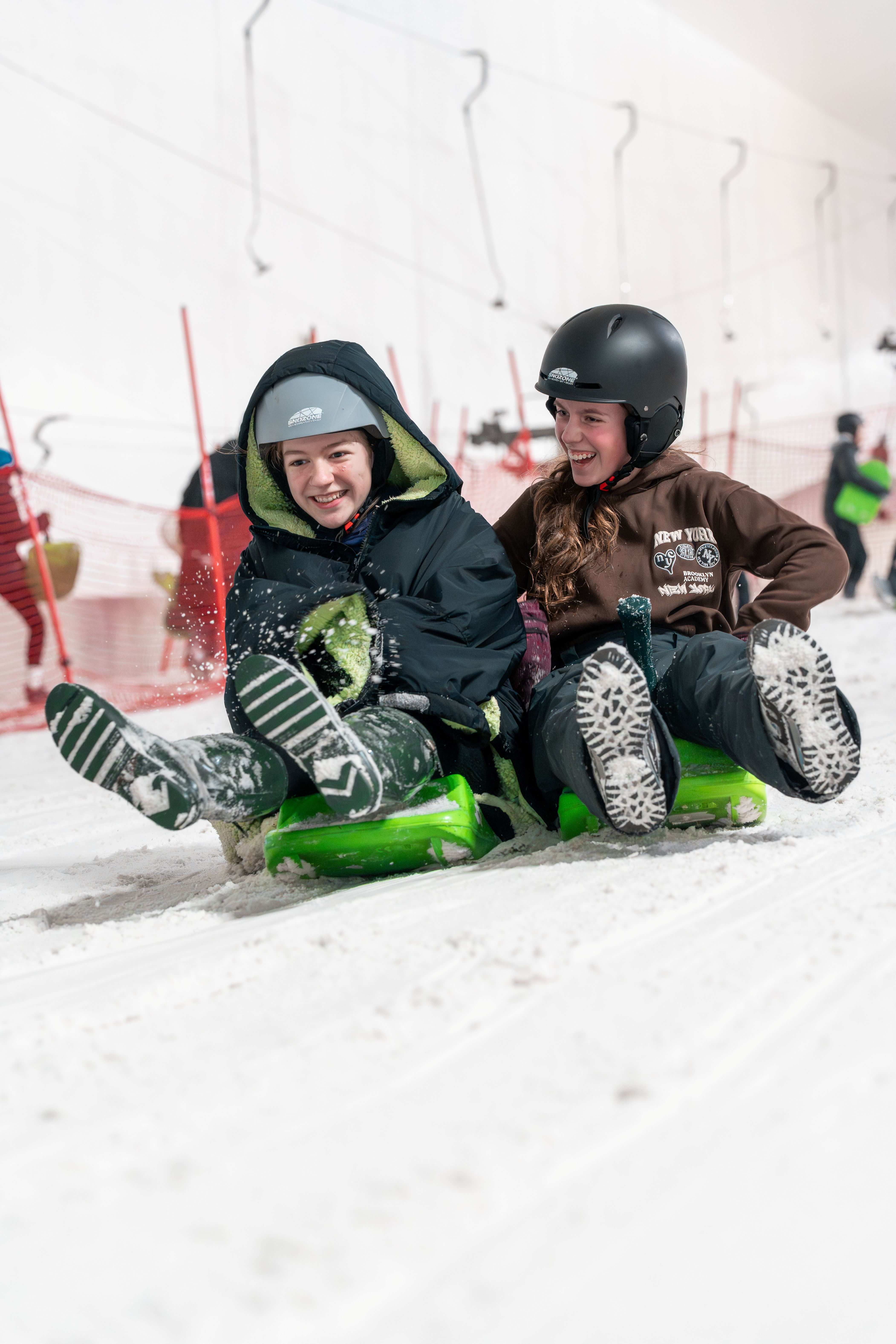 Helmet hire is included in your ticket price, and if you or your students forget your gloves or warm socks, these can be purchased from our kiosks in each venue.